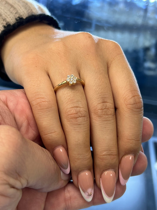 14K Flower Women’s Ring CZ Stones Yellow Gold