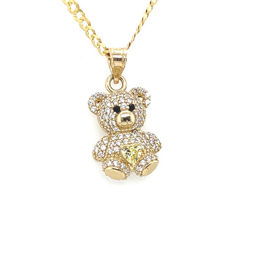 14K Teddy Bear 🧸 Pendant With Solid Cuban Chain